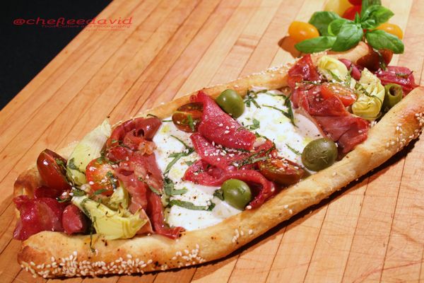 Coca Antipasta - *Prosciutto, Salami, Coppa, Artichoke, Olive, Fresh Mozzarella, and Basil on Sesame Brown Butter Crust